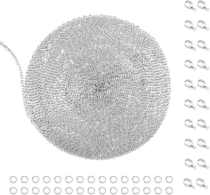 36 Feet Silver Stainless Steel Link Cable Chain with 20 Lobster Clasps and 30 Jump Rings for Men Women Jewelry Chain DIY Making, 2.0mm