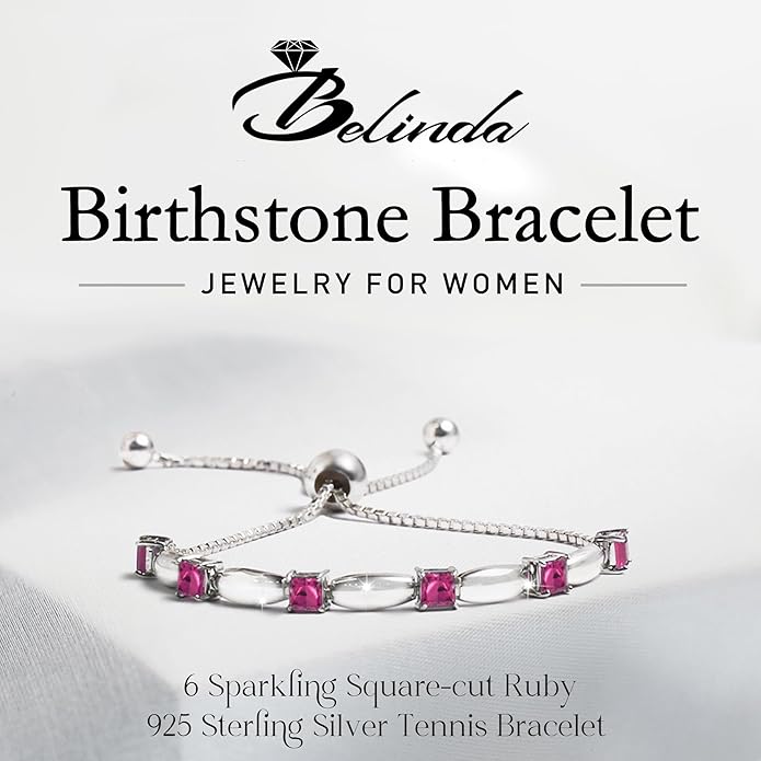 - Create the Perfect Fit - Elevate your style effortlessly with the Belinda Jewelz Birthstone Bracelet featuring a tennis-style design and 6 sparkling square-cut Created Ruby accent stones. The adjustable silicone ball ensures a perfect fit, giving you the freedom to showcase your unique style with ease.