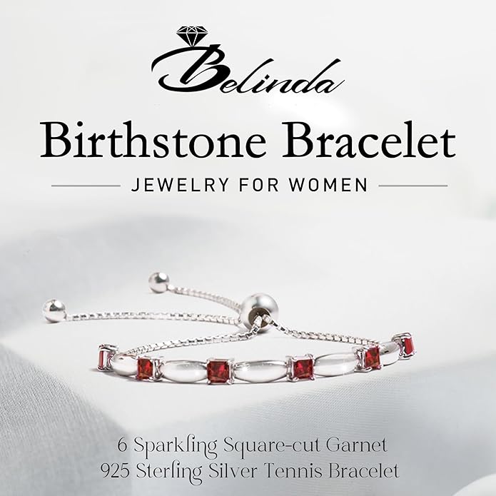 - Create the Perfect Fit - Elevate your style effortlessly with the Belinda Jewelz Birthstone Bracelet featuring a tennis-style design and 6 sparkling square-cut Natural Garnet accent stones. The adjustable silicone ball ensures a perfect fit, giving you the freedom to showcase your unique style with ease.