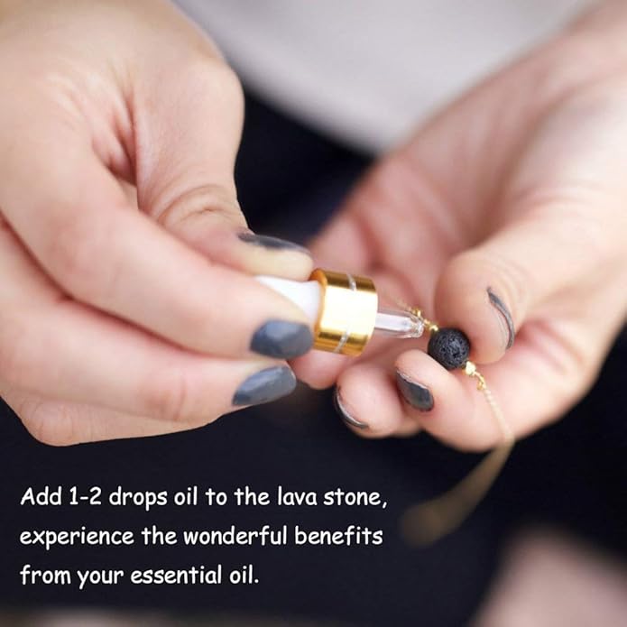 - 【Lava bead necklace】 This essential oil diffuser necklace is made with one natural volcanic lava beads with a 16’’+2’’ extension chain length. A lava pendant necklace is a good way to wear your favorite essential oil all day, every day. The benefits of essential oils are endless. This diffuser necklace is made with a 10mm round lava rock bead that is wrapped in wire on each side and connected to the 18k gold plated satellite chain