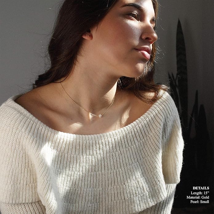 - Wedding Jewelry: A simple and dainty single freshwater-cultured pearl necklace on an 18k gold plated chain. It looks delicate on its own or layered with other necklaces. This dainty choker necklace features a tiny freshwater cultured pearl on an 18k gold plated chain. Minimalist jewelry is the perfect top piece for a layered necklace set, but also the perfect gift for every woman and, of course, the best option to wear every day