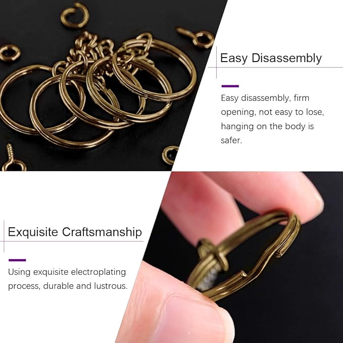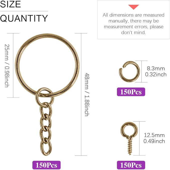 - ☛ 1, WHAT YOU GET --- We have prepared 25mm Key rings for you, key rings with chain, you will get 150 pieces open jump rings and 150 pieces screw eye pins. Totally 450 pieces keychain findings that will meet your needs for craft projects.