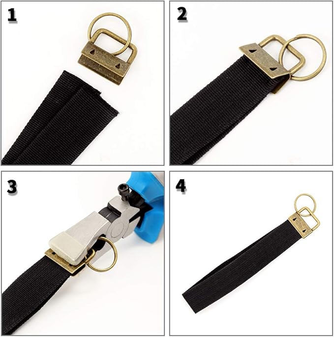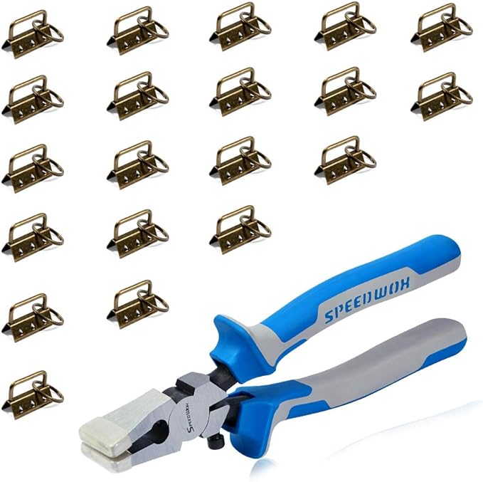 SPEEDWOX Key Fob Pliers and 20 Sets 1.25 Inch Key Fob Hardware with Split Rings Antique Brass Webbing Fabric Crafts Wristlet Set Glass Breaking Pliers Tools with Rubber Tips
