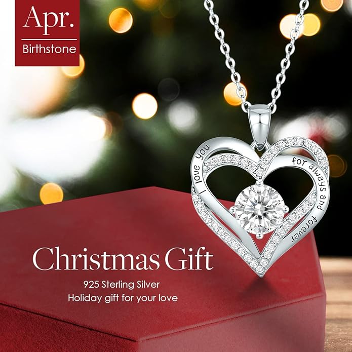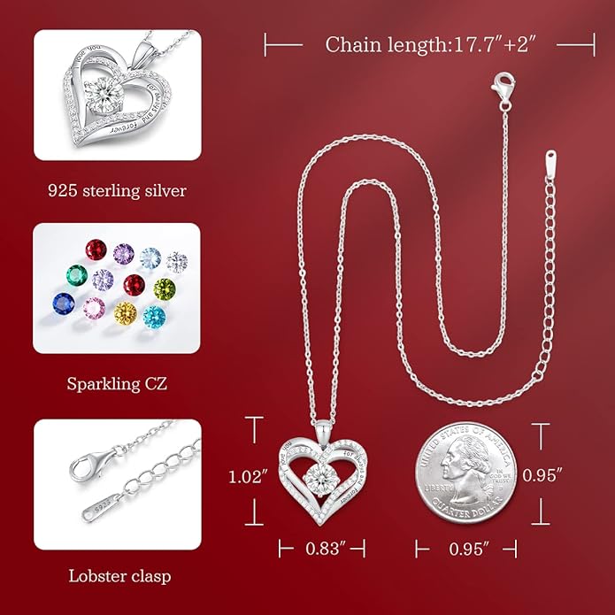 CDE Valentine's Day Gift Forever Love Heart Necklaces for Women, Wedding Anniversary, Birthday Mothers Christmas Day Gifts for Mom, Mother, Wife, S925 Silver Jewelry with Birthstone Pendant