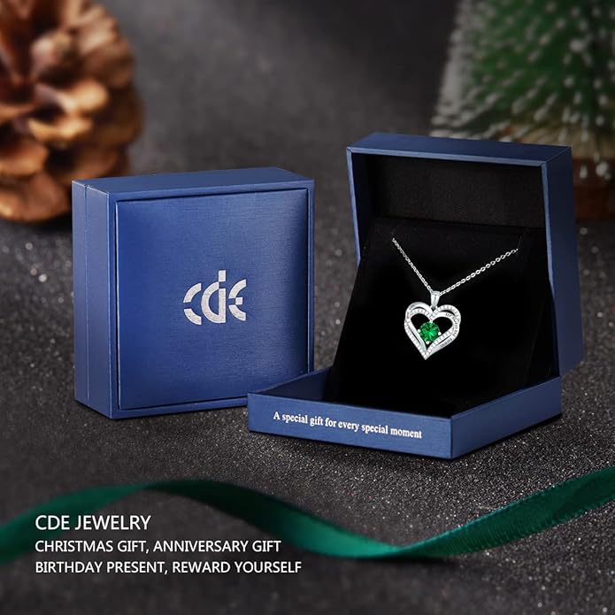 CDE Valentine's Day Gift Forever Love Heart Necklaces for Women, Wedding Anniversary, Birthday Mothers Christmas Day Gifts for Mom, Mother, Wife, S925 Silver Jewelry with Birthstone Pendant