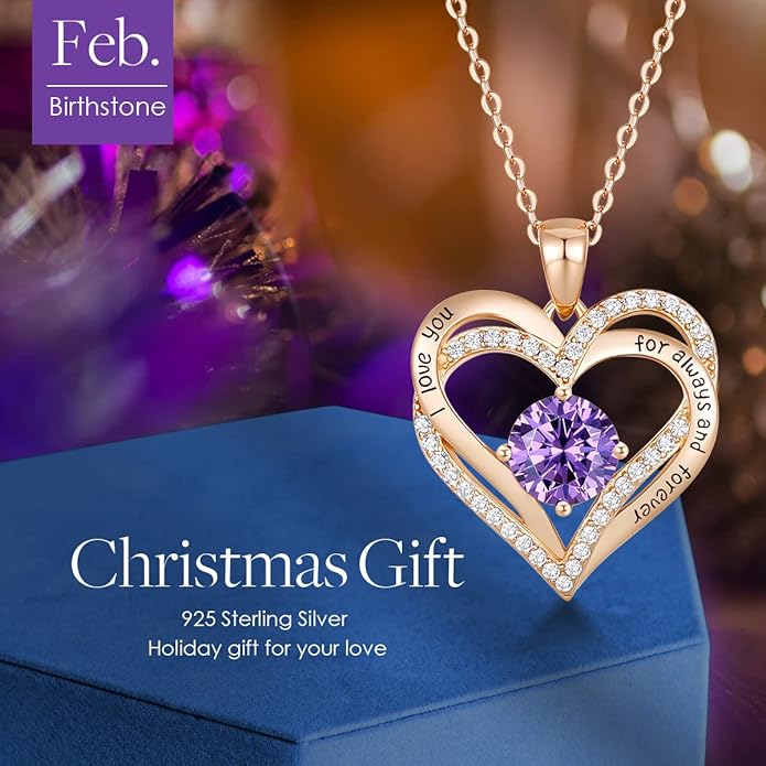 CDE Valentine's Day Gift Forever Love Heart Necklaces for Women, Wedding Anniversary, Birthday Mothers Christmas Day Gifts for Mom, Mother, Wife, S925 Silver Jewelry with Birthstone Pendant