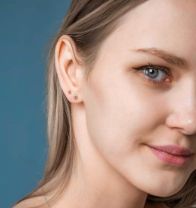 - Stud Earrings Set for women : This exclusive set offers five unique pairs of polish ball stud earrings in multiple sizes which include 3mm, 4mm, 5mm, 6mm, and 7mm for both women and men, and which for those who have multiple piercings