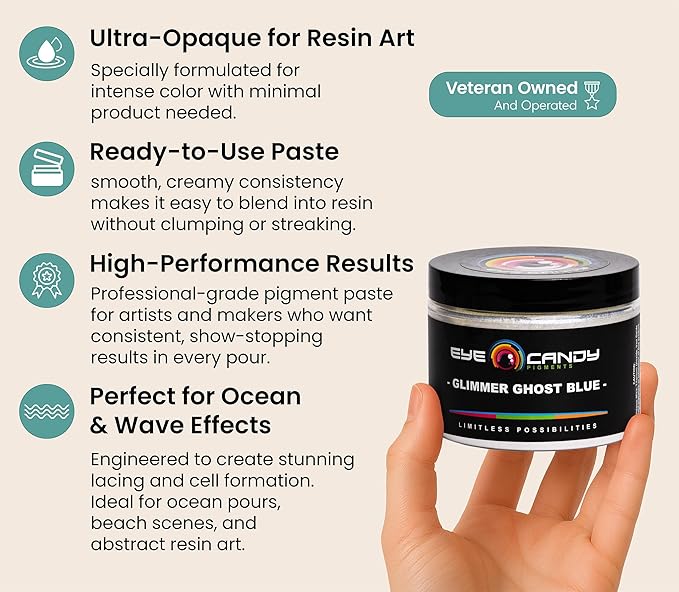 Eye Candy Premium Mica Powder Pigment “Glimmer Ghost Blue” (25g) Multipurpose DIY Arts and Crafts Additive | Woodworking, Bath Bombs, Resin, Paint, Epoxy, Soap, Nail Polish (Glimmer Ghost Blue, 25G)