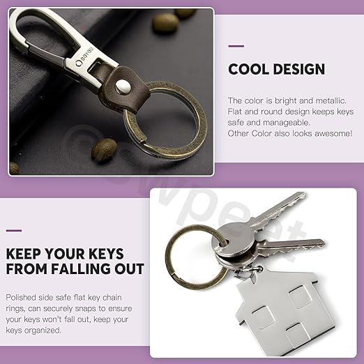 - ☛ 4, Keep your keys from falling out: polished side safe flat key chain rings, can securely snaps to ensure your keys won't fall out, keep your keys organized. Warm notice: please watch out your nails when put your keys into the circle key ring; Probably best to use without adding or removing keys too often.