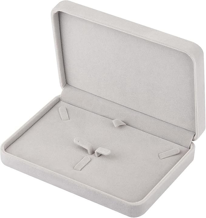 LETURE Large Velvet Jewelry Set Box, Big Necklace and Ring Earring Pendant Gift Box, Pearl Necklace/Chunky Necklace Jewelry Storage Case (Grey)