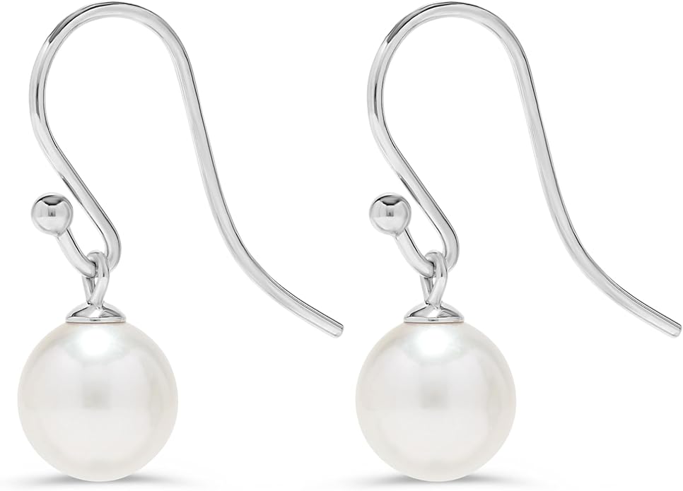 - TIMELESS SOPHISTICATION - Add a sophisticated and feminine touch to any outfit with these stunning 7.5-8mm creamy white freshwater cultured pearl earrings. Featuring a perfectly-matched pair of lustrous pearls in alabaster white, the pearls are set into comfortable French ear wire hook settings made of solid 925 sterling silver. These light dangling ball-shaped earrings are a comfortable and easy everyday or formal look.