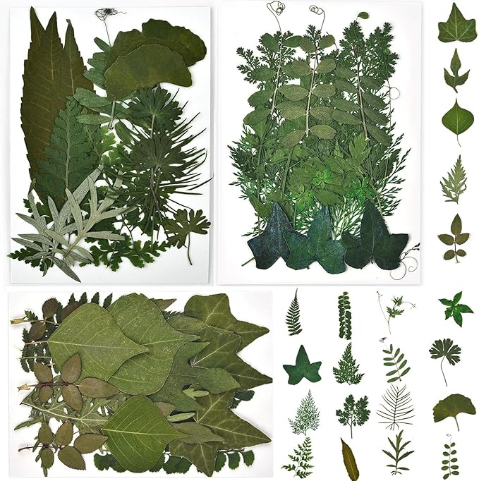 DALARAN 63 PCS Natural Dried Leaves Pressed Leaves Dried Pressed Flowers for Crafts Soap Making Candle Making and Resin Jewelry Making Pressed Flower Art Floral Decors