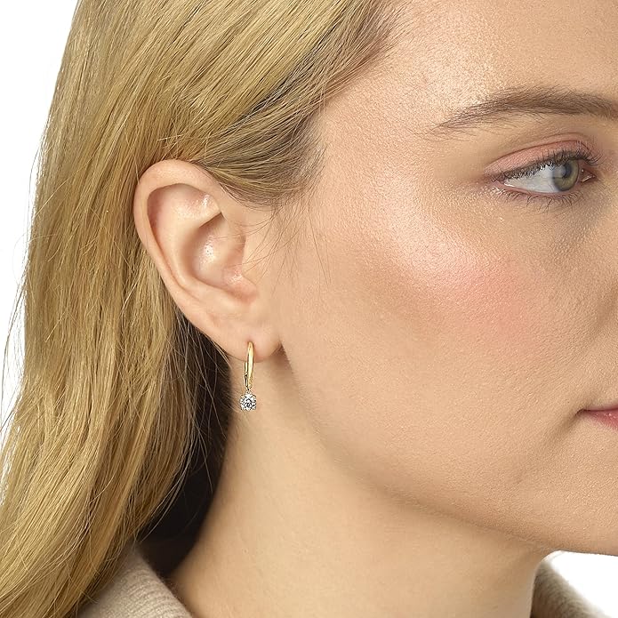 - EPITOME OF ELEGANCE - These exquisite lab grown diamond dangle drop earrings are crafted in 14k yellow gold. Each earring boasts a dazzling lab-grown diamond, securely held in a 4-prong setting that allows the diamonds to shine brilliantly. With a combined carat weight of 0.66 cttw, these diamonds exhibit a radiant G-H color and impressive VS1-VS2 clarity. The leverback design offers both security and sophistication, allowing these earrings to sway gracefully with every step