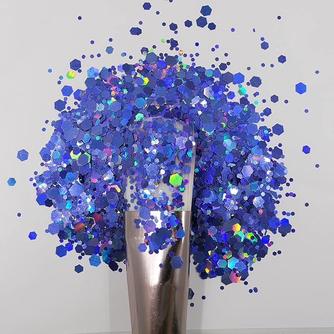 - Our chunky glitters mixed with 3 sizes 1mm+2mm+3mm hexagon shapes glitters, includes hologrpphic silver, hologrpahic mermaid blue, holographic dark blue, hologrpahic black, holographic purple, holographic rose, holographic pink, holographic bronze, holographic gold, holographic light green, holographic green and hologrpahic copper, total 12 different colors.