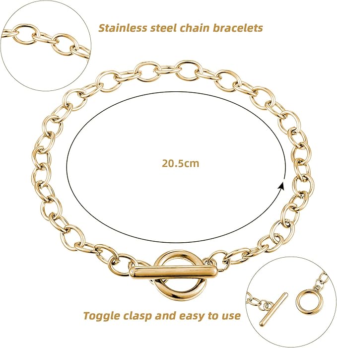 - Dimension information: the stainless steel bracelet chain is approx. 18 cm/ 7.08 inches in length, one size fits most people to wear, these toggle bracelet chains are ideal for charms, pendants, tiny stones, beads and so on