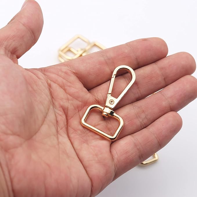 JWBIZ 16 Pcs D Ring Swivel Lobster Claw Clasp, Push Gate Snap Hooks Trigger Clips (Gold, 3/4 inch)