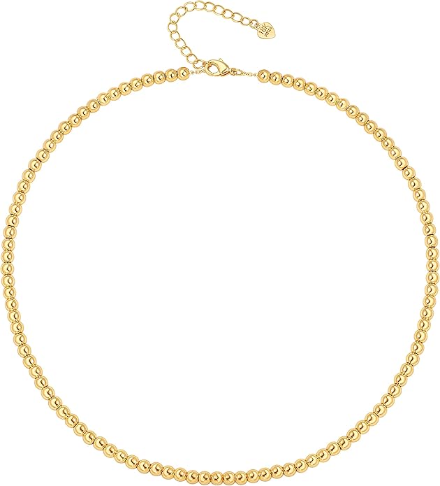 - Hypoallergenic -- Dainty gold bead jewelry necklace charm choker. 4mm round beads in 18k gold plated which are strung on an 18k gold plated stainless steel cable chain choker, are rolling and shiny. Nickel-free and lead-free, hypoallergenic for your skin, the gold beads chain necklace is suitable for wearing every day. Lightweight and minimalist necklace, 18k gold necklace for women will add stylish charm to your daily.