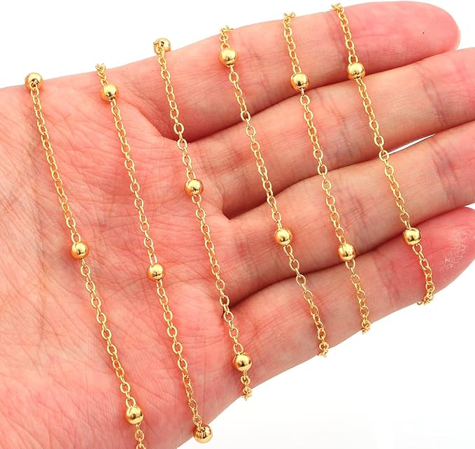 BEADIA 18K Gold Plated O Chains 2.0mm with 4mm Beads 2 Meters for Jewelry Making Findings
