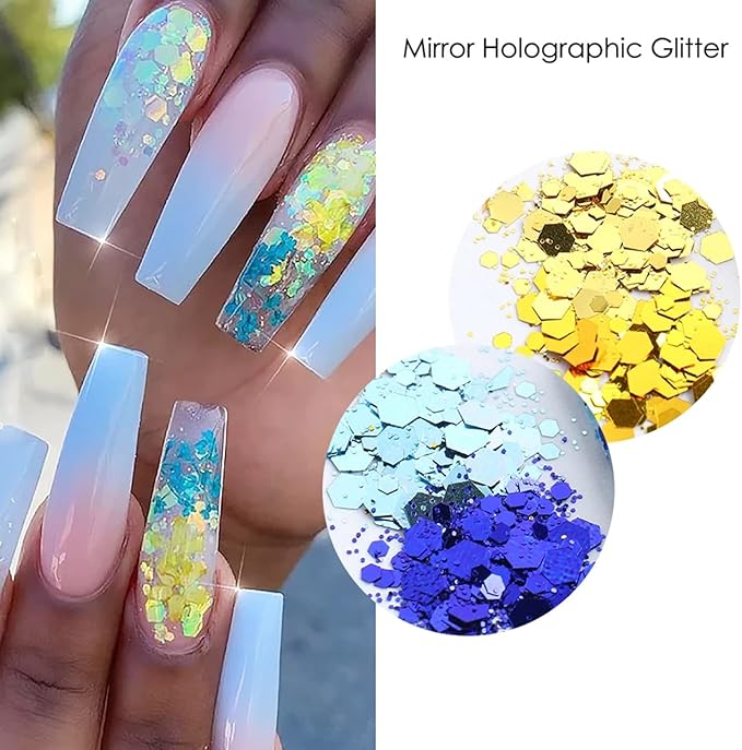 - 【Easy to Use】Suitable for professionals or beginners. Polygon shape nails glitter sequins perfect for natural or artificial nails. and can be combined with all UV gel nail polish, DIP powder, and all nail powders.