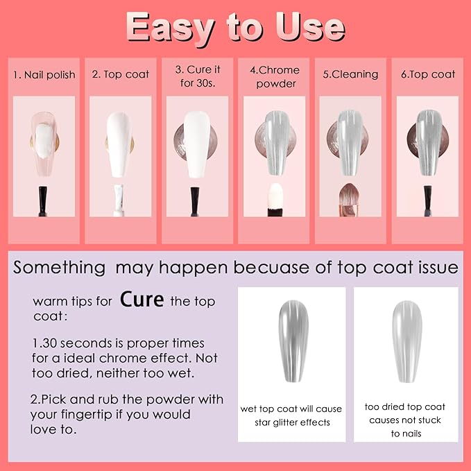 - Ultra Excellent Texture: The silver chrome and pink chrome powder is fine and smooth without particles feeling, so you can make your valentine nails exquisite with an amazing mirror effect. And the valentine nail art powder is non-toxic, more durable, and environmentally friendly, which does not harm your nails and skin, using it more at ease. Make mirror effects for your nails with our excellent equality chrome powder set.