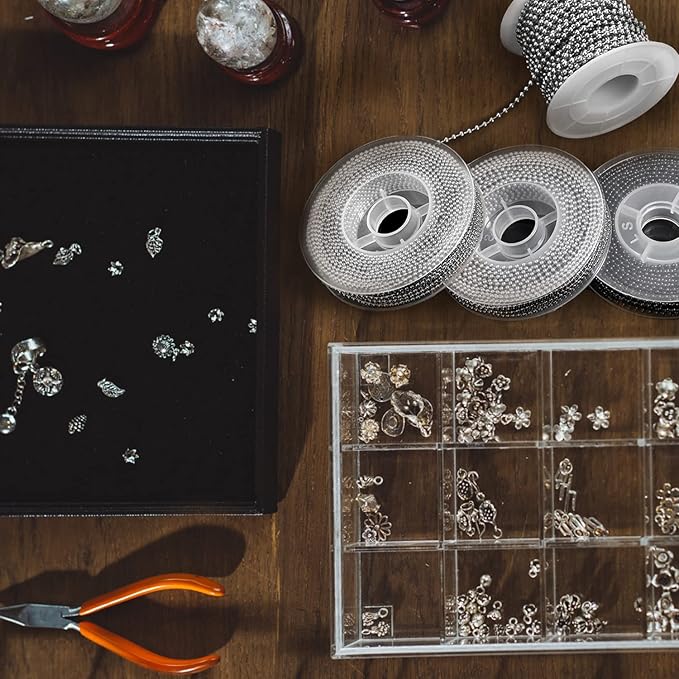 - 33 FEET ROLL SET: 33ft (10m) silver stainless steel ball chain in a spool with 20 pack silver stainless steel ball chain connectors.