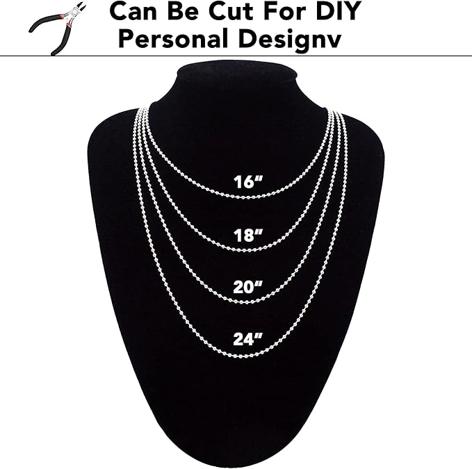 - WIDE APPLICATION: Perfect for ball chain necklace, dog tag necklace for men, dog chain necklace, dog tag chain necklace, beaded chain necklace, anxiety necklace, crave necklace, komuso breathing necklace, keychain, key chain, pull chain extension, earring, bracelet, anklet, body chain, extender chain, layered choker necklace etc. Simple classic style fit for dog tags, id tags, pendants, charms, european beads, spacer beads, gemstones and crystals. Let's make your own personalized DIY crafts now!