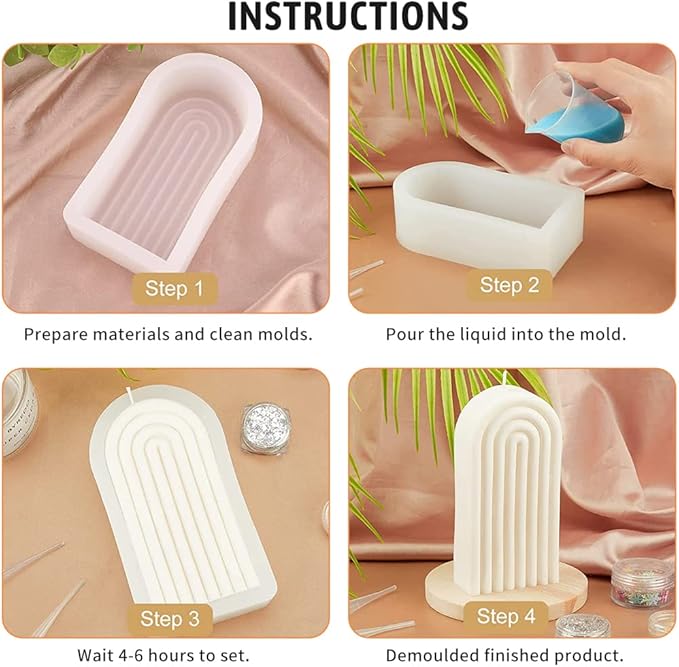 - GEOMETRIC U-SHAPED CANDLE MOLD:Featuring a rainbow bridge swirl arch, this candle mold is new and unique and perfect for home decor. It measures 3x1.7x5.5 in (7.7x4.4x14cm) and weighs 0.43 lbs (200 g). The finished candle measures 2.4x1.5x4.8 in (6x3.8x12cm).