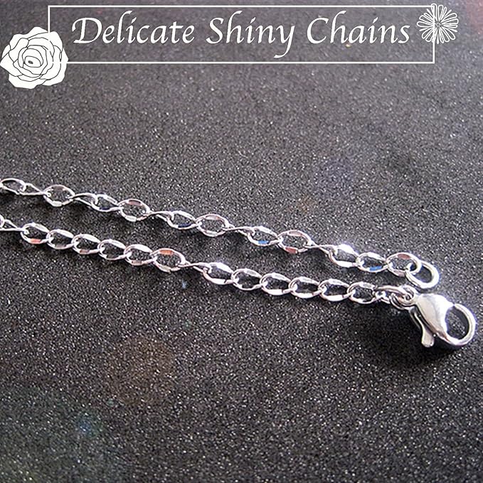 - THIN & STRONG: The size of the chain links are 3mm long, 2mm wide, 0.3mm thick; the size of the lobster clasps are 10mm long, 5mm wide; the size of the jump rings are 4mm long, 4mm wide - Small, fine, thin, but strong and sturdy. Great for jewelry making supplies and findings.