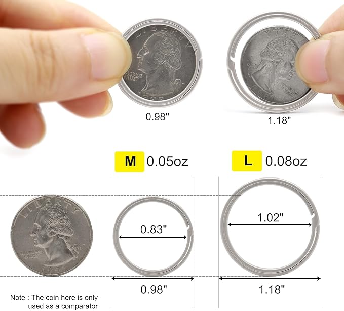 - Medium Size Keychain Rings: You can get 5pcs titanium key rings. Size M is 0.98" and size L is 1.18". Organize different keys and key charms in one place for easy tracking