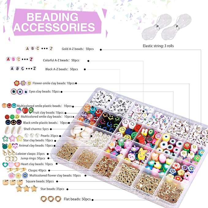 - Enjoy Your DIY Time: Beads are great craft items. Clay beads for bracelet making is not only great for stress relief, but also can improve the parent-child relationship and more company time with kids or students