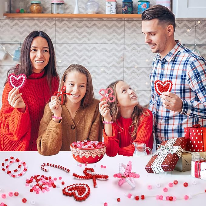 UPINS 1200Pcs Valentine's Day Pony Beads for Jewelry Making Bracelets Crafts Plastic Small Spacer Beads Pink Rose Red White Pony Beads DIY Hair Beads for Necklace Bracelets Earrings Supplies