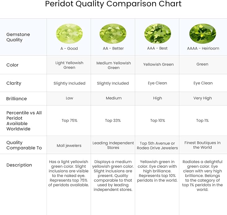 - Gemstone Shape: The pear-shaped peridot has an elegant, bold and dramatic look. It's a stunning fusion of the marquise cut and the classic round cut. Perfect for adding a touch of sophistication to your outfit.
