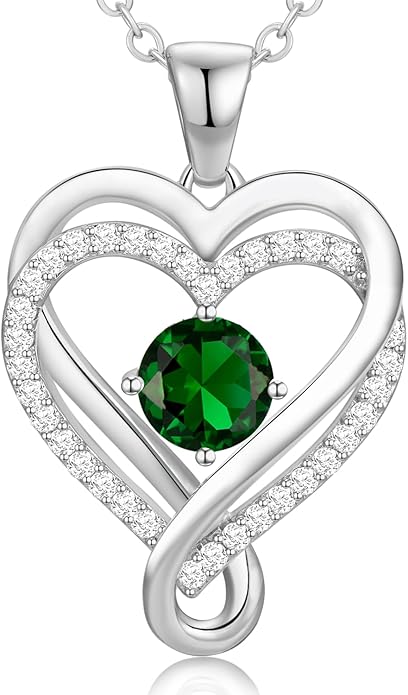 Infinity Love Heart Birthstone Necklace for Women Wife, S925 Sterling Silver Anniversary for Women Wife Birthday Gift for Her Girlfriend Mom Daughters, I Love You Women's Jewelry 18k Rose Gold Filled