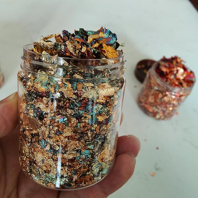 - ADD DIMENSION TO YOUR ARTWORK – JINRUISI variegated flakes can be applied easily using gilding size and create a stunning shiny textured effect.