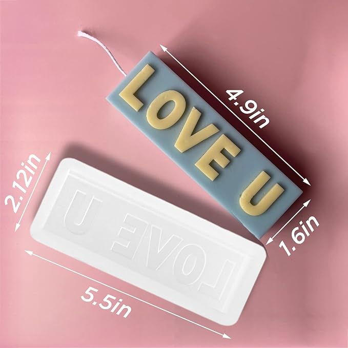 TOPYS Rectangular Alphabet Letter Pillar Silicone Resin Mold Candles Molds, Letter Candle Chocolate Mold for Resin Pendant Plaster Carving Making Aromatherapy Ornaments Handmade Gifts (Love u)