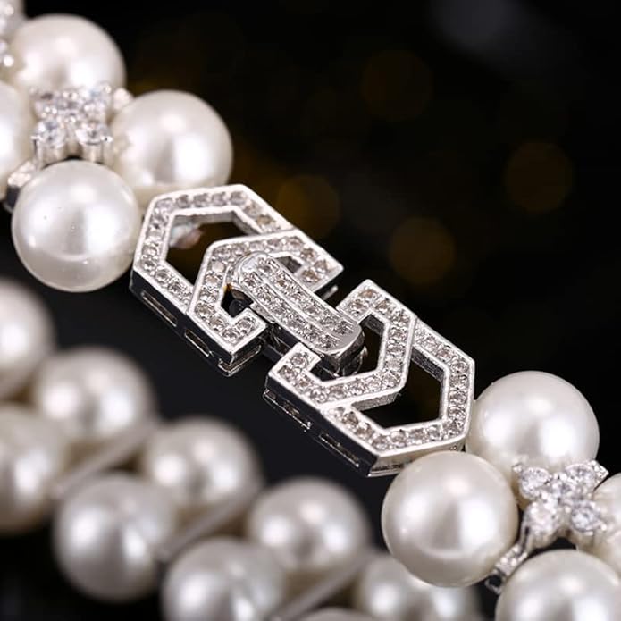 - 【Layered Design】Two rows of freshwater white pearls are connected in series, and a row of four-claw Moissanite is embedded in the middle as an embellishment, which adds a sense of hierarchy. The design of the butterfly lock makes the opening and closing more silky, suitable for all occasions.