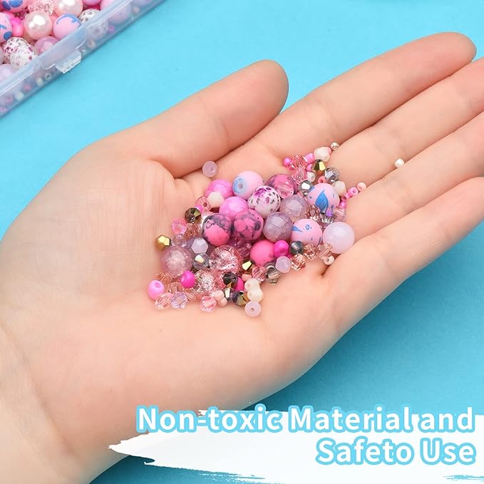Rose Quartz Jewelry Making Kit - 900pcs Glass Beads, Assorted 8mm, Bicone Crystal, Spacer Seed Beads for Bracelet Crafting