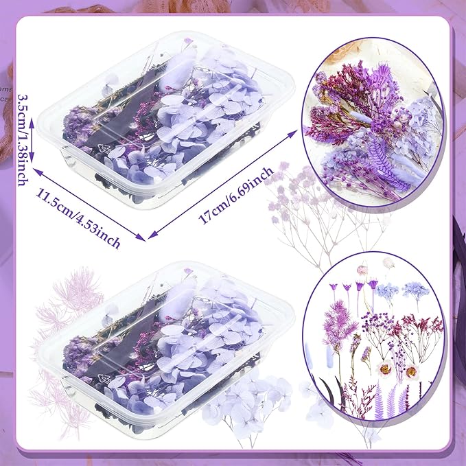 Woanger 2 Boxes Dried Purple Flowers Dried Flower for Resin Crafts Real Natural Leaves Petals 13 Types Pressed Flowers for DIY Candle Nails Making Jewelry Scrapbooking Soap Wedding Home Decor