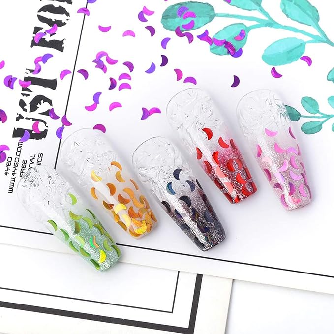 - 【Laser Design】Through adopting special laser technology, these shiny crescent sequins exhibit different shining effects from different angles. Holographic 3D glitter decorations will make your nails looks more charming.