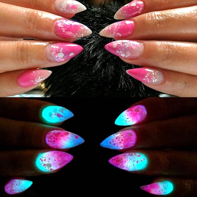 - 【Quality】Fluorescent nail powders, made of polyester, non-toxic, safe for nails and skin. Acrylic powder can be used with both UV Gel Polish and normal nail polish.
