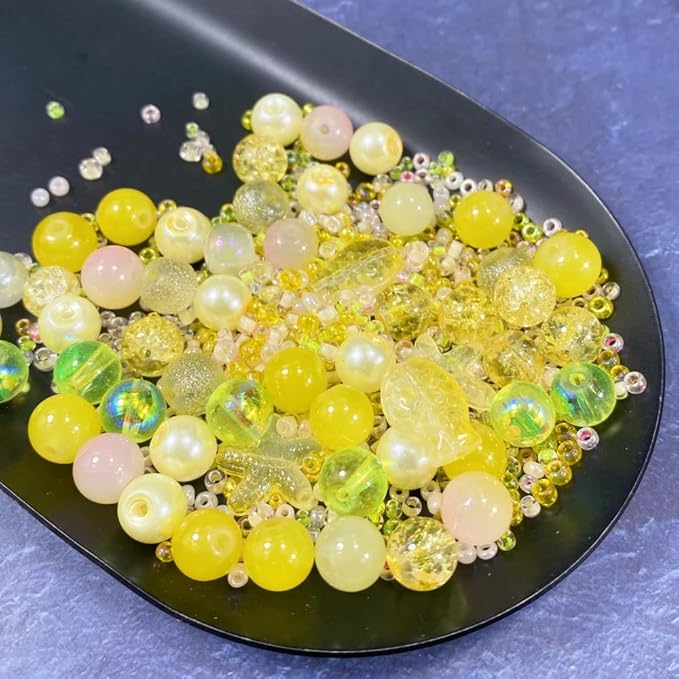 Assorted Glass Resin Beads Multi Size Colors Smooth Cracked Gravel Millet Spacer Beads for Bracelets Necklace Earring DIY Jewelry Making Craft(Glazed Yellow Series)