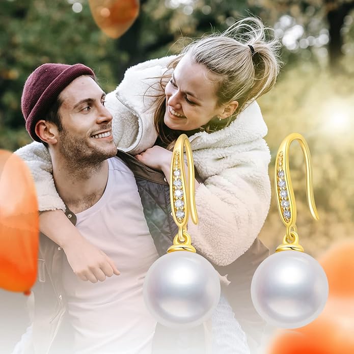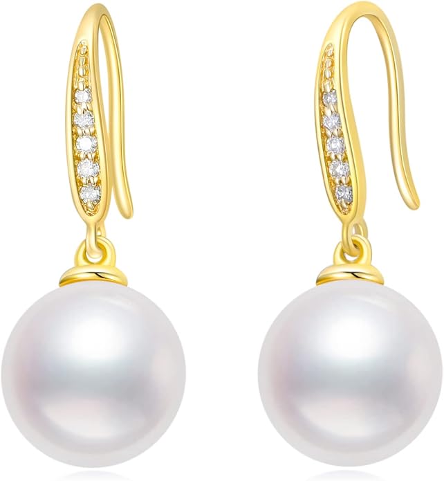 - 【Material】Stone: Natural Diamond, Freshwater Cultured Pearls; Metal: 10k gold ( Not gold-filled, Notu gold-plated ); these pearl dangle earrings are high-quality, hypoallergenic, and nickel free.