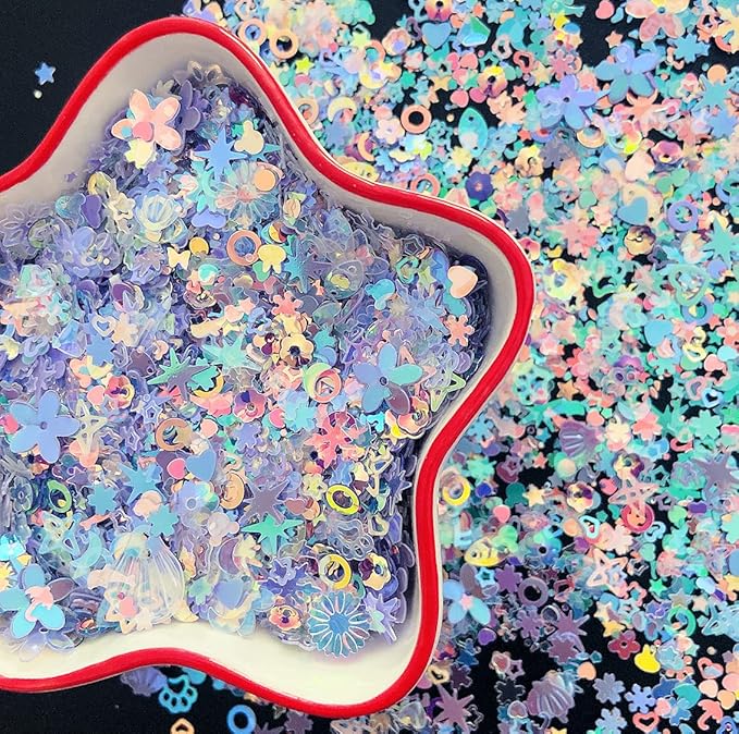 - 🐾PACKAGE INCLUED - Holographic Nail Glitte 50g/ bag, featuring many patterns, such as stars, hearts, flowers, shells, butterflies, rabbits, moon, etc. These nail decorating accessories can meet your decorating and DIY needs. Nail decoration is suitable for professional or domestic use, They Shows Shiny Color When Seen from Different Lights and Angles,Make Your Nails Stunning and Luminous.