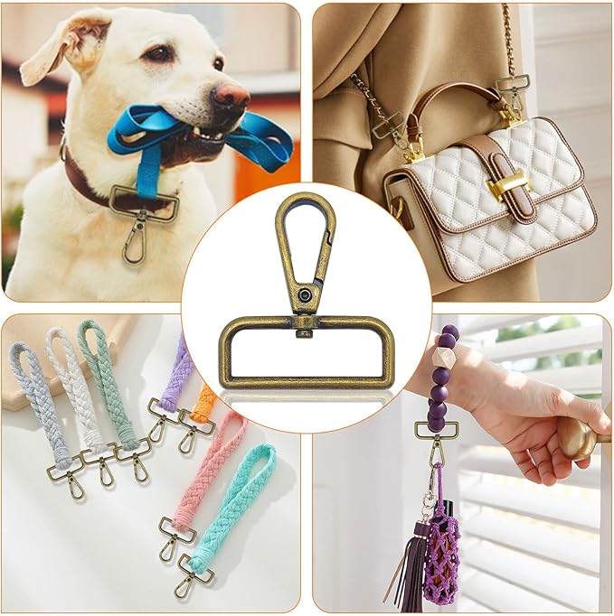 - 【Package Includes】Package comes with 12pcs 1-1/2" inside diameter D ring swivel lobster claw clasp.Color:Antique Bronze.They are durable and great value for your regular needs.