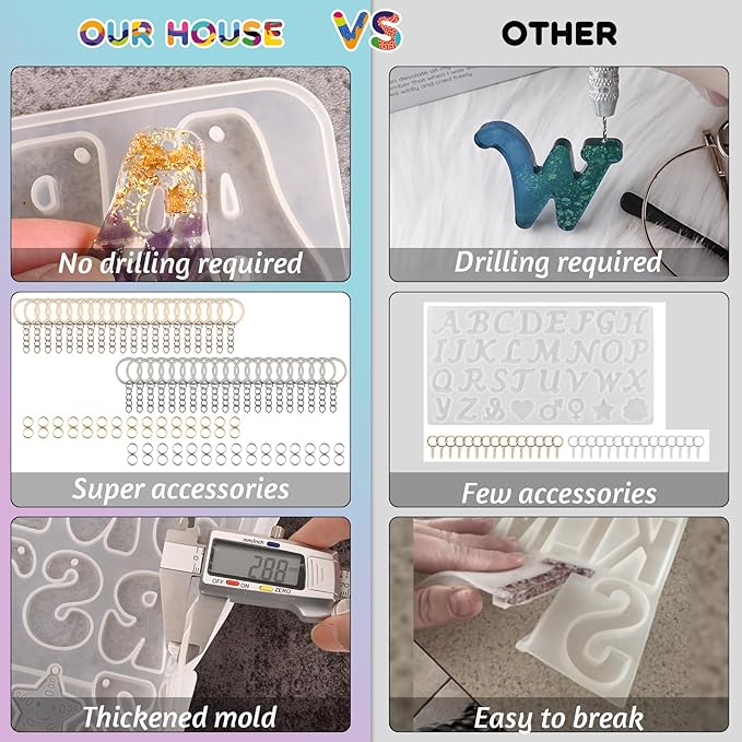- Package Include: Resin alphabet molds kit Include 20pcs gold key rings and 20pcs silver key rings, also 60pcs jump rings(gold and silver), with these complete kit you don't need to buy keychain accessories separately,perfect for making your individualized resin keychains, pendants.