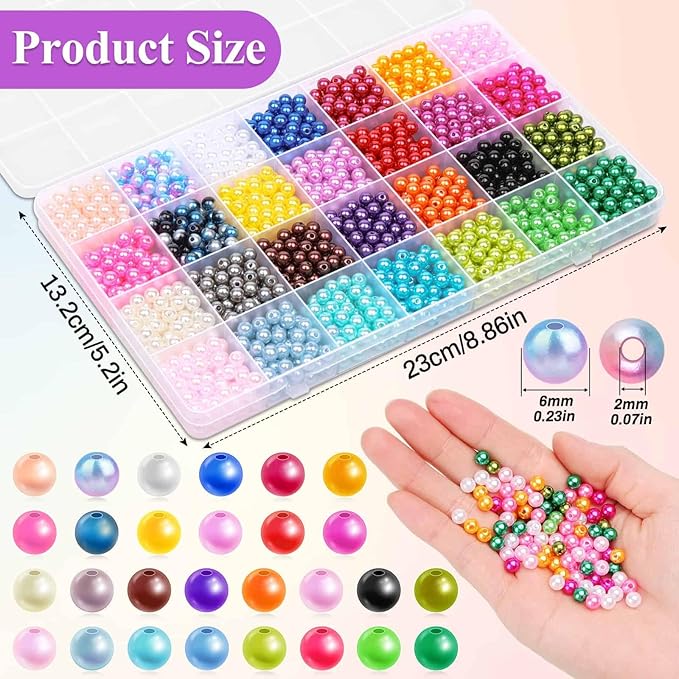 Audab 2240Pcs Pearl Beads for Jewelry Making 28 Colors, Colored Pearl Beads for Bracelets Making, 6mm Shiny Beads Small Round Pearl Bracelet Beads for Crafts, Jewelry Making and for Bracelets Making