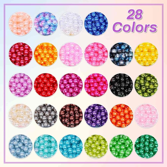 - A Wonderful Selection of 28 Colors – This pearl beads for jewelry making set come with 28 different shiny colors. The pearl beads for bracelets are with beautiful iridescent color and shine and lots of variety for friendship bracelets, earrings, making outdoor wind chimes or other crafts