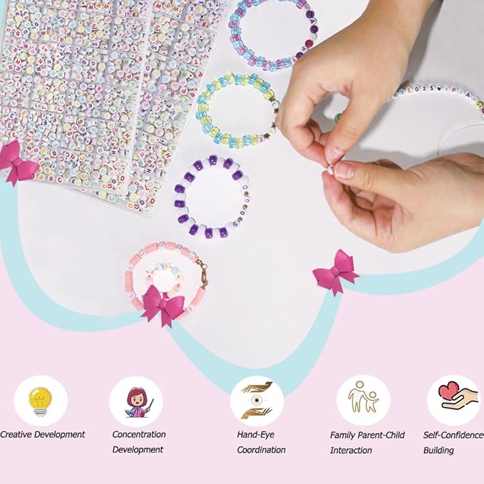 - 💕 EXTRAORDINARY SIGNIFICANCE: handmade alphabet beads DIY is conducive to the development of children's creativity, concentration training, improve hand-eye coordination, handmade alphabet beads DIY activities for the family to provide a common opportunity to participate in this kind of parent-child interactive activities to deepen the close emotions between family members, for the family to bring more fun as well as good memories.