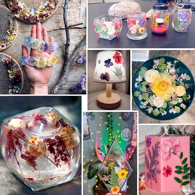 - Easily Using for devocation and crafting: those natural pressed dried flowers leaves can work well with nail, resin molds, note card, stationery, wedding invitations, envelopes, stained glass, bookmarks, candle makers, soap making, table decorations, furniture and wood workings.