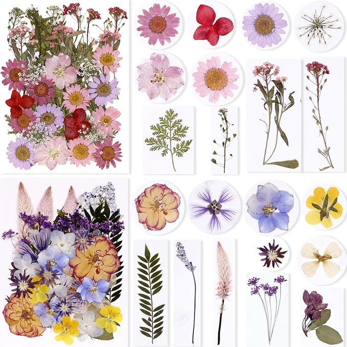 - Real Dried Flowers: Those pressed dry pressed flowers and leaves are made of real flowers and plants, their variety of shapes, colors,and sizes for making craft working, DIY art, painting and so on.